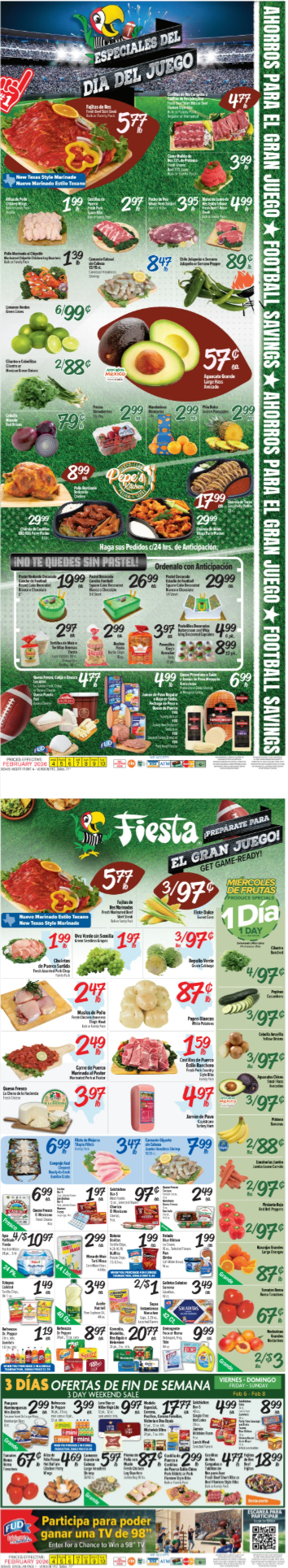 Looking for the Fiesta Weekly Ad? You’re in the right place. Each week, Fiesta Mart brings new deals, low prices, and special offers on fresh groceries. From fruits and meats to snacks and household items, you’ll find great savings. The flyer 4-10feb, 2026 is updated weekly, so check back often to stay on top of the latest Fiesta Mart discounts and promotions. Whether you're shopping in-store or online, the Fiesta Mart weekly ad helps you save more on everyday items.