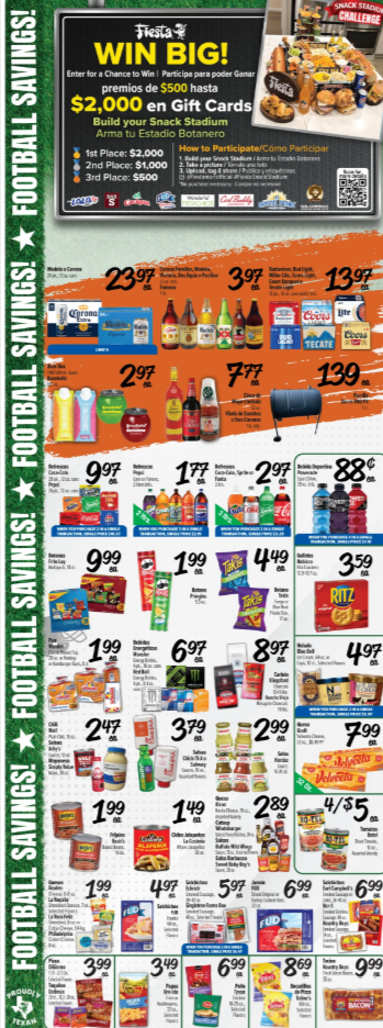 Here is your sneak peek at the Fiesta Weekly Ad for this week and next week. We list the newest flyers early so you can plan your shopping ahead. The ad for this week covers all the best deals on food, drinks, and more. Next week’s flyer gives you a head start on upcoming discounts. Both flyers show Fiesta Mart's top offers, so you never miss a bargain. Be sure to check each ad by store location, as prices may vary.